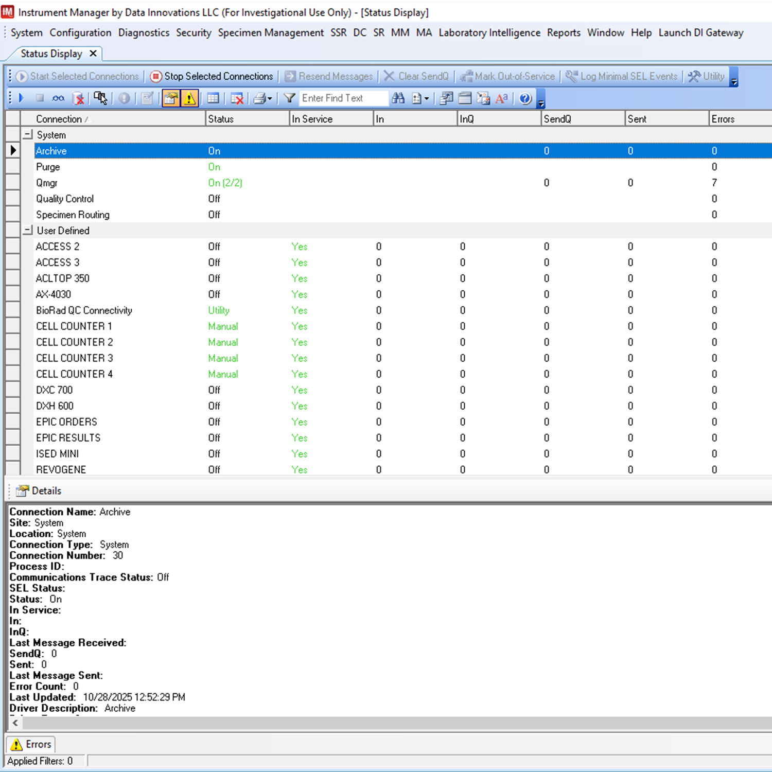 Solution: Instrument Manager (IM) ensures interoperability of LIS and analyzer connections throughout laboratory disciplines, and is entirely scalable, enabling multiple sites to operate through a single IM dashboard.