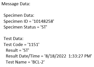 NOTE This status message is from a specific instrument. Please refer to your instrument’s driver help file for detailed information about the structure and content of the expected HL7 message.