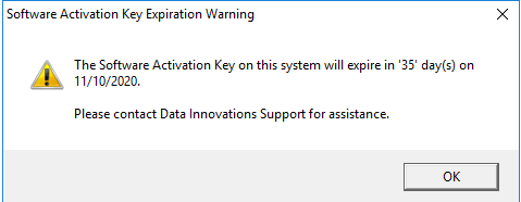 As a customer you may receive a pop up when launching Instrument Manager warning of an expiring software activation key if a valid permanent key is not in place.