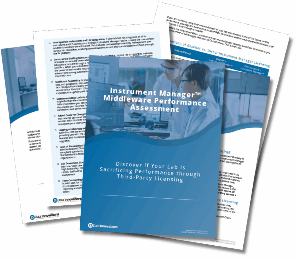 The many advantages of truly vendor-neutral middleware are clear. Labs that are operating without truly agnostic middleware may be sacrificing performance, efficiencies, quality, and patient care. Now that you’re aware of the benefits of truly vendor-middleware, where can you find it? Instrument Manager by Data Innovations offers all of these benefits and more, giving labs the freedom to connect all instruments with unlimited scalability, set up standardized workflows, improve uptime and quality, and benefit from time-saving automation so that your lab can do more with less. With truly vendor-neutral middleware, your lab has the flexibility and tools to grow with the future and achieve new levels of performance.